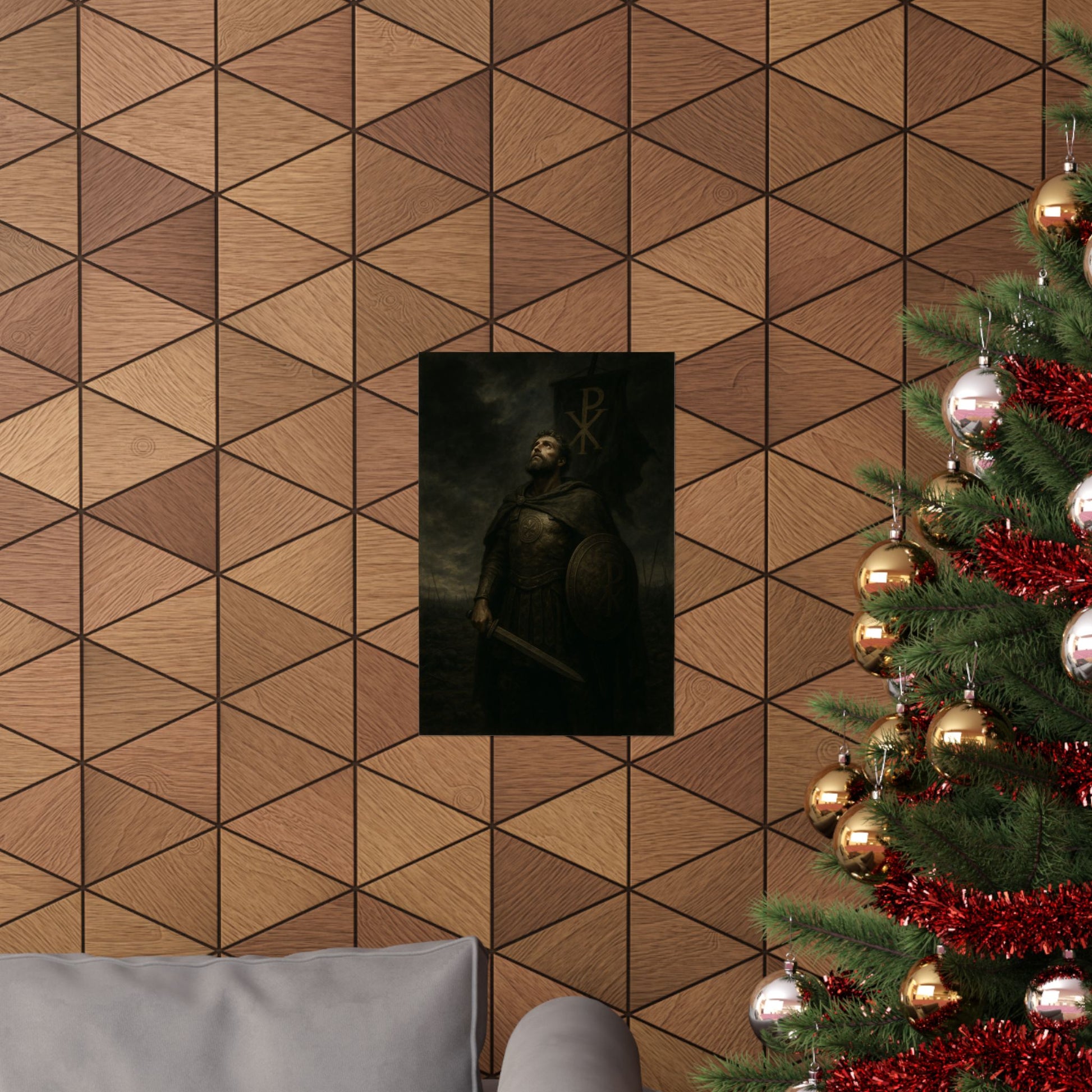 Depiction of Emperor Constantine standing victorious in the aftermath of the Battle of the Milvian Bridge, eventually leading to the establishment of Christianity in the Roman Empire. This piece works as a focal point in study corners, library walls, or beside a reading lamp—where history, myth, and faith feel close and tactile. Printed on archival museum-grade paper, it holds its tone over time and is made for indoor display in many sizes to suit framed or unframed arrangements.