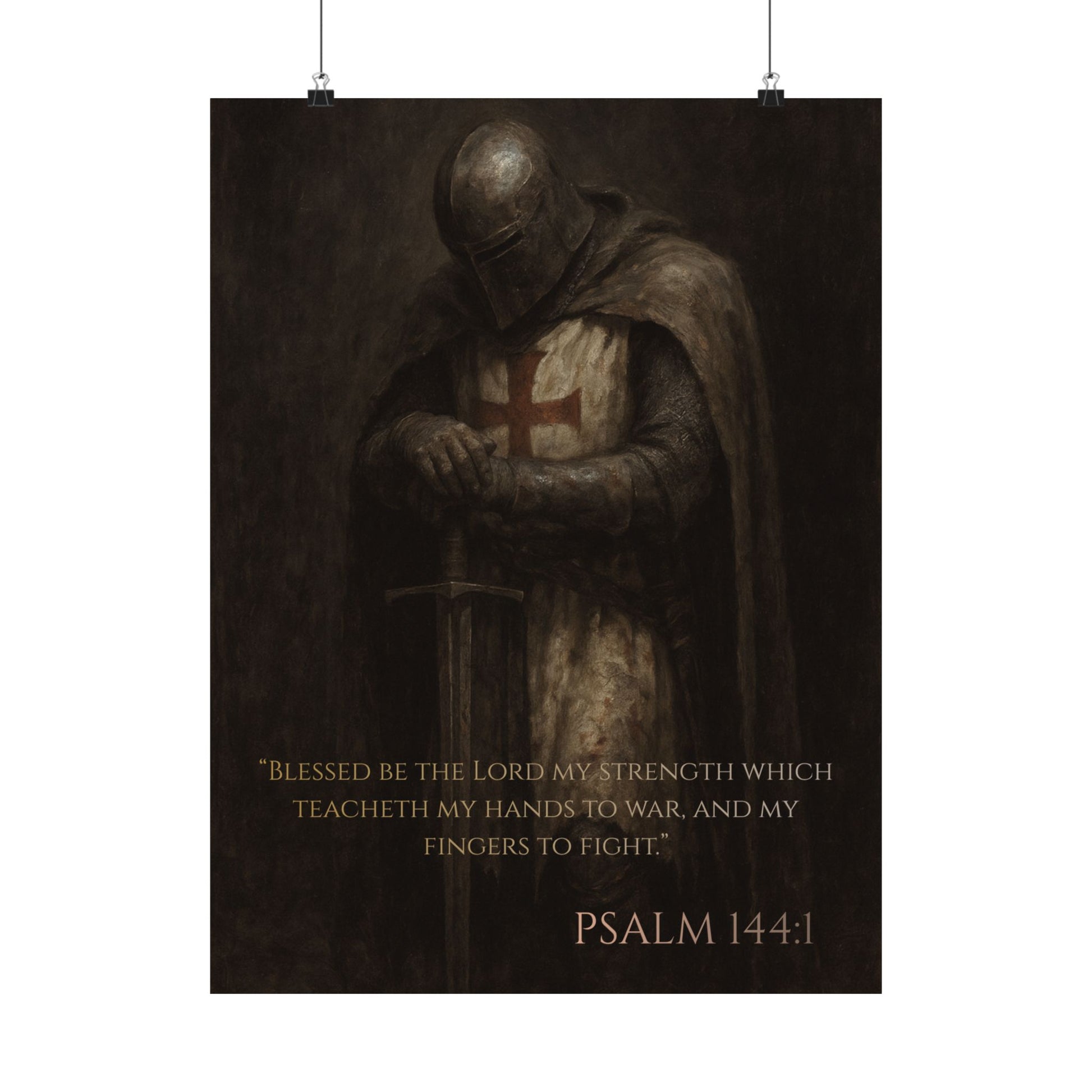 Templar Knight Matte Vertical Poster, Psalm 144:1 Art Print, Wall Decor, Home Decoration