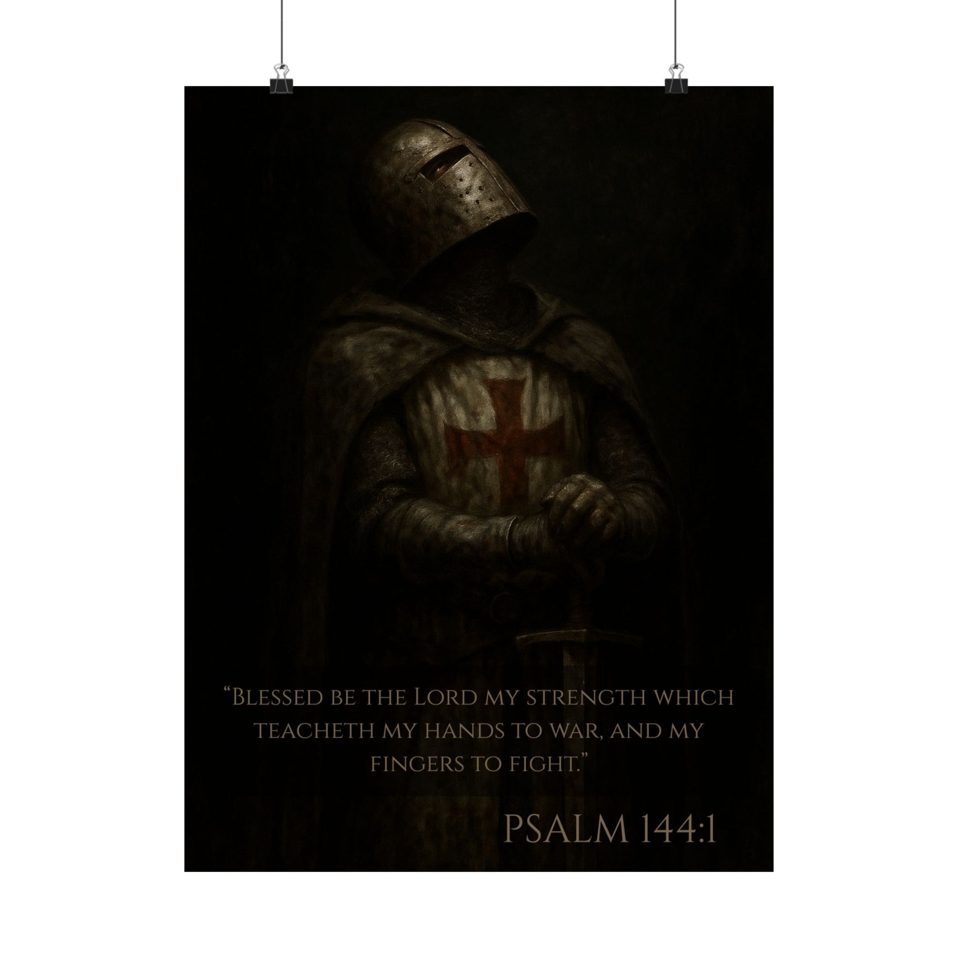 Templar Knight Matte Vertical Poster - Psalm 144:1 Inspirational Verse